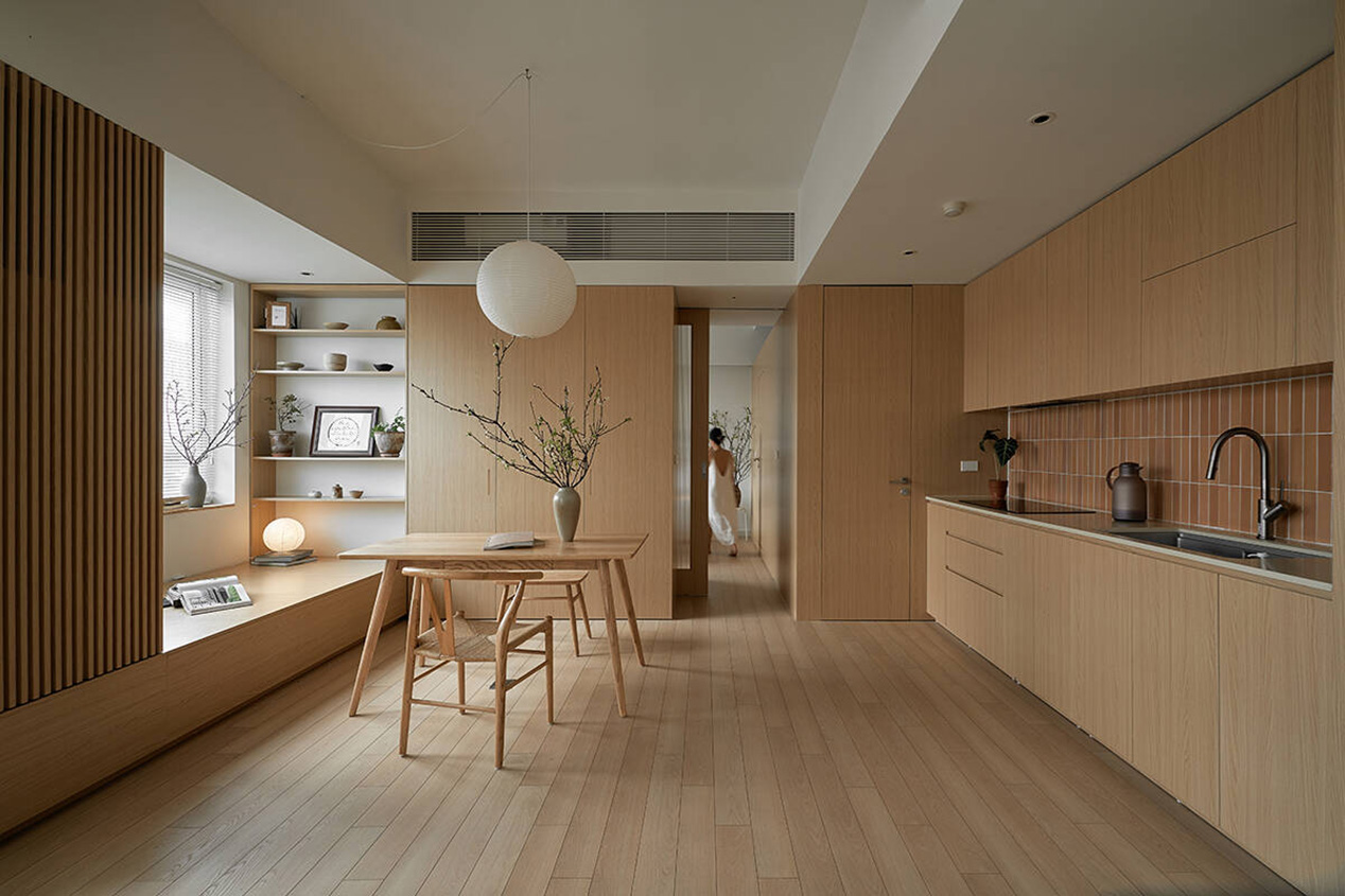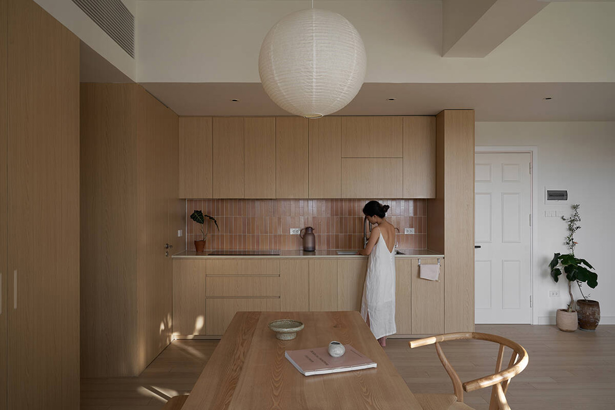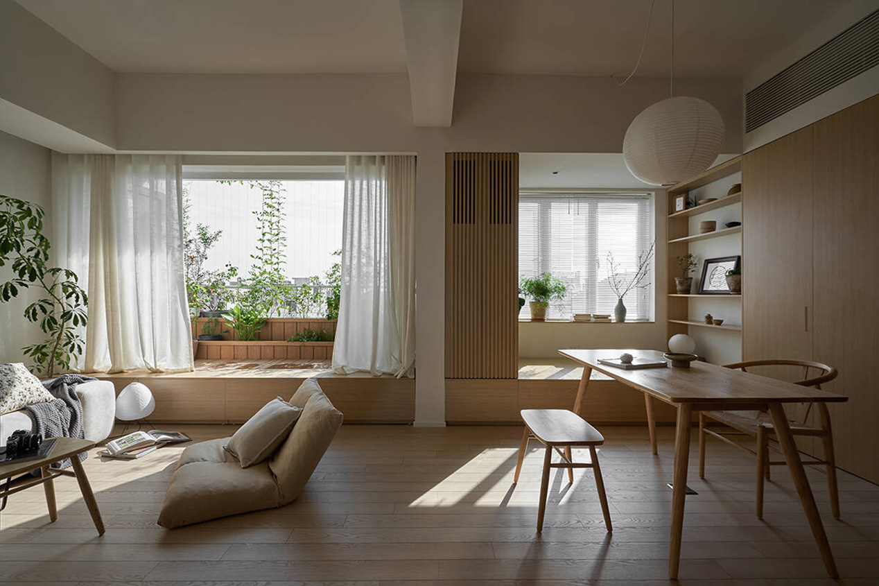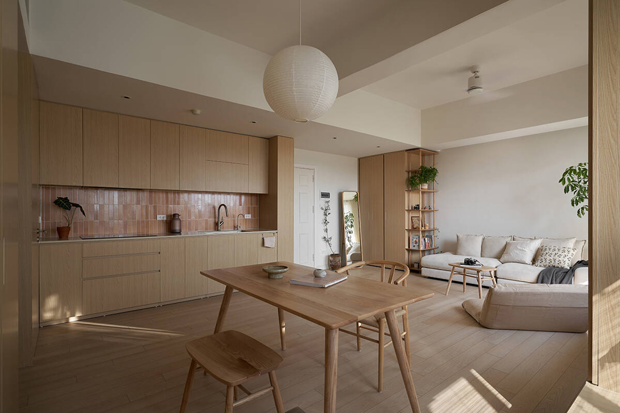 TAH không gây ấn tượng bằng trang trí cầu kỳ, mà bằng sự đồng nhất và tiết chế. Màu sắc trung tính, vật liệu giản dị được lựa chọn nhằm làm nền cho ánh sáng, cây xanh và đời sống diễn ra trong căn hộ. Khi các yếu tố thị giác được giản lược, không gian trở nên “dễ thở” hơn, cho phép cảm xúc và sự tĩnh tại xuất hiện một cách tự nhiên.
