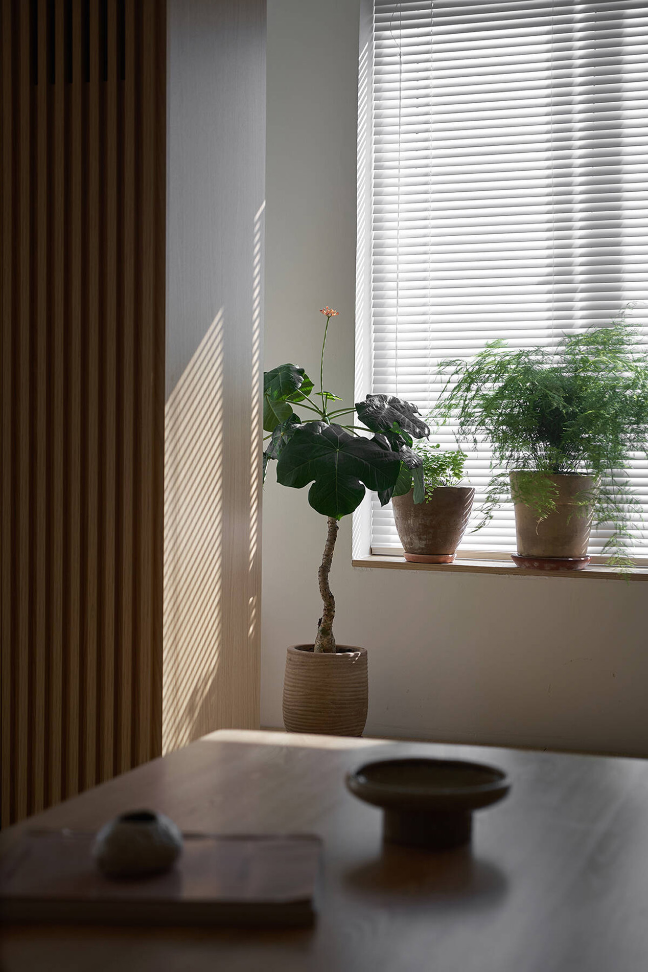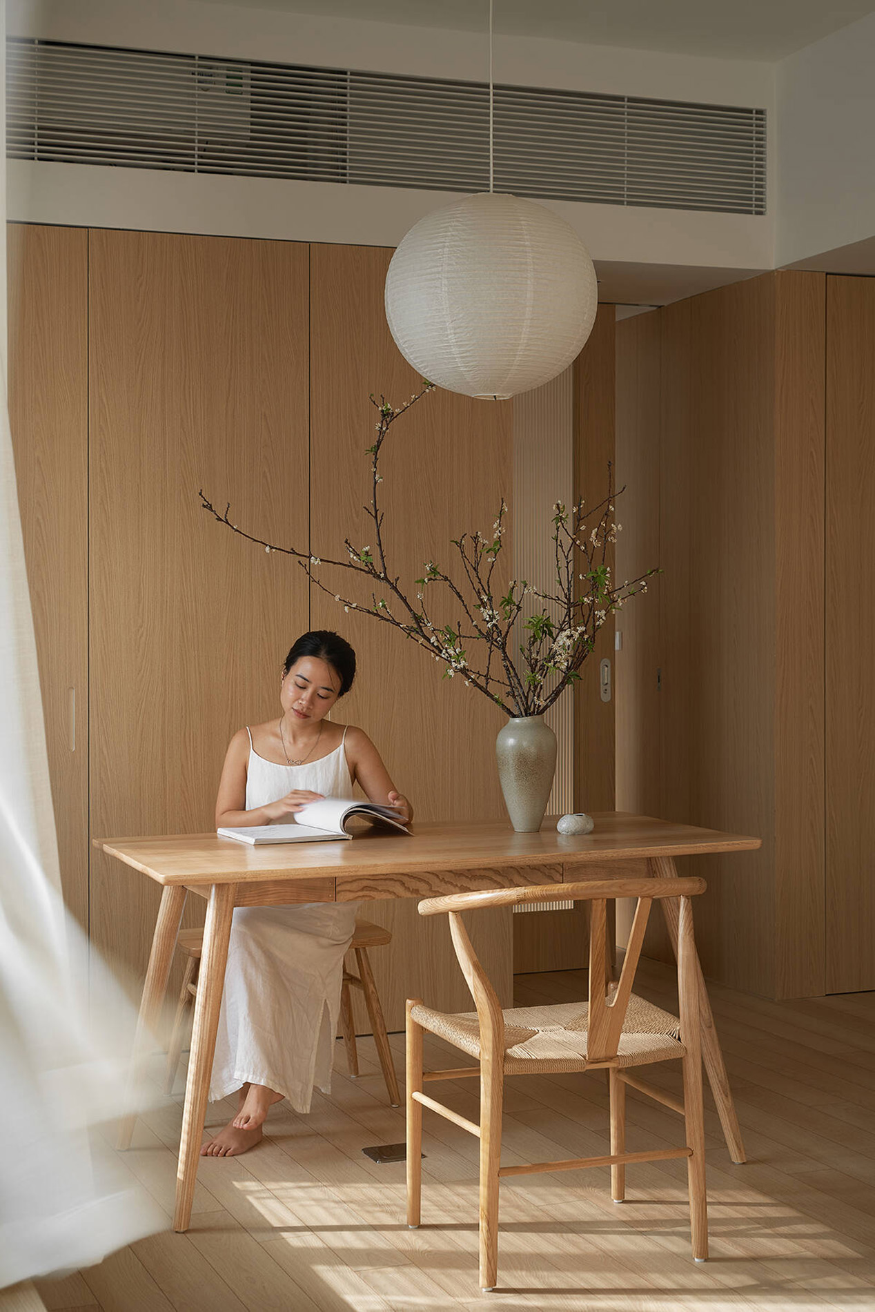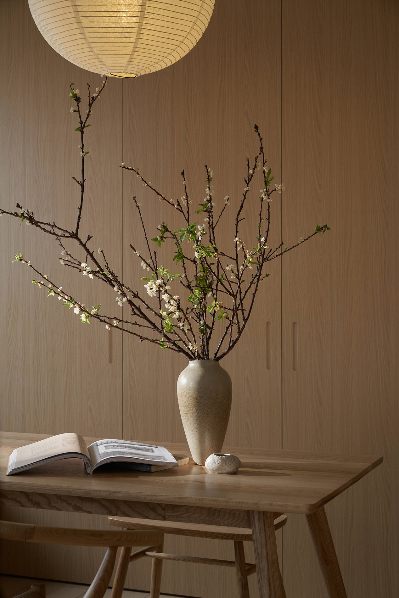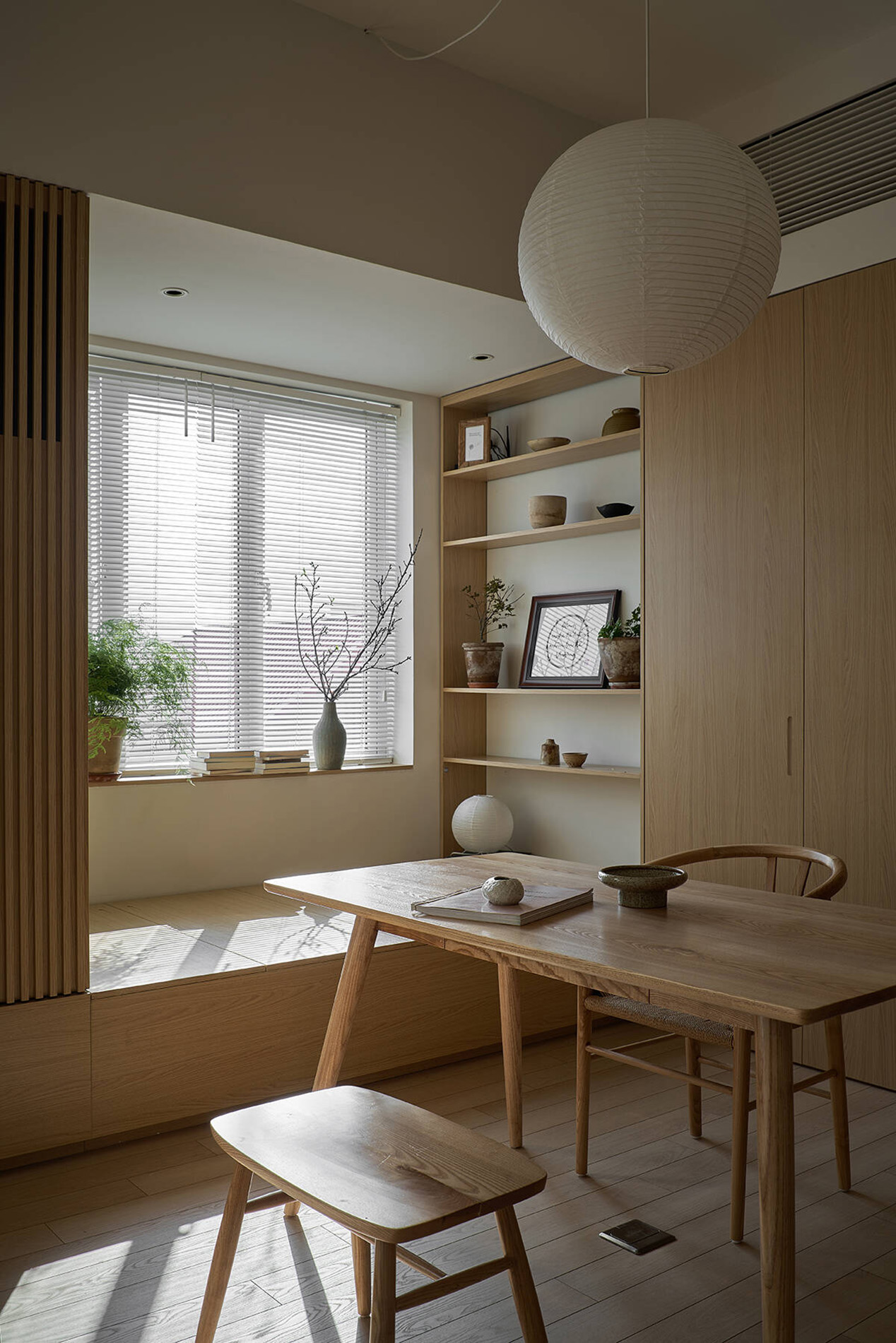 TAH không gây ấn tượng bằng trang trí cầu kỳ, mà bằng sự đồng nhất và tiết chế. Màu sắc trung tính, vật liệu giản dị được lựa chọn nhằm làm nền cho ánh sáng, cây xanh và đời sống diễn ra trong căn hộ. Khi các yếu tố thị giác được giản lược, không gian trở nên “dễ thở” hơn, cho phép cảm xúc và sự tĩnh tại xuất hiện một cách tự nhiên.