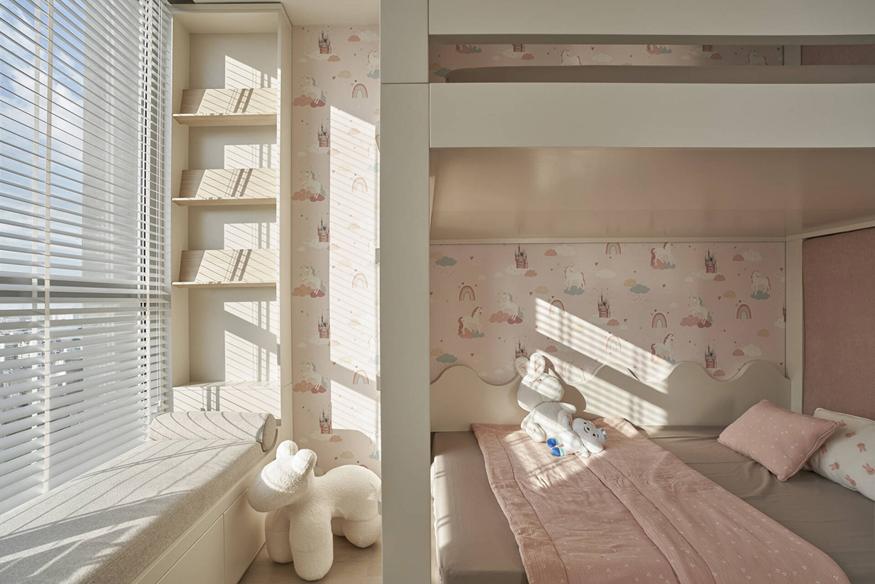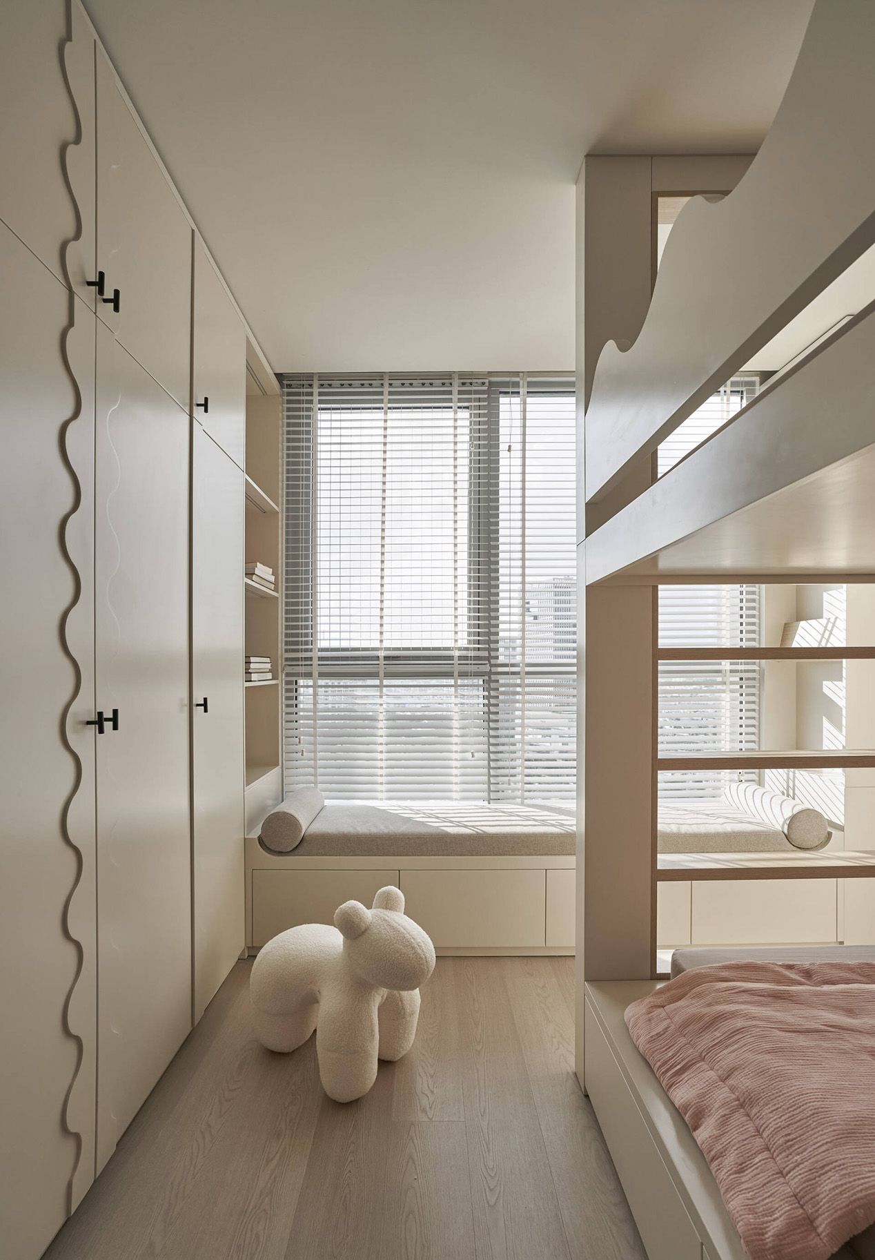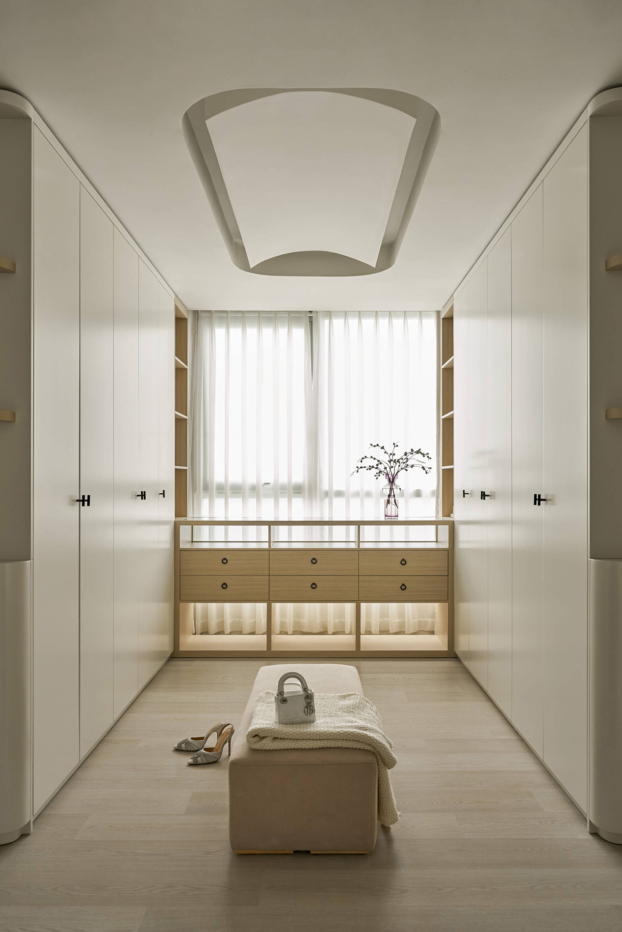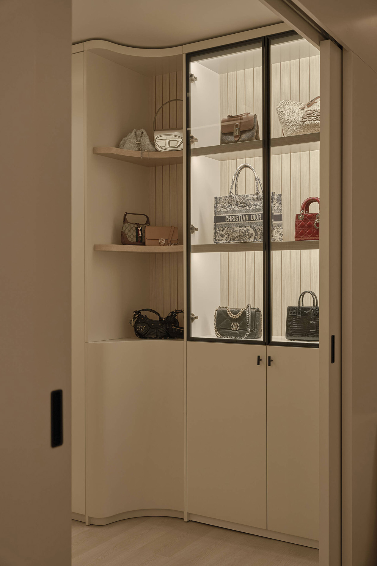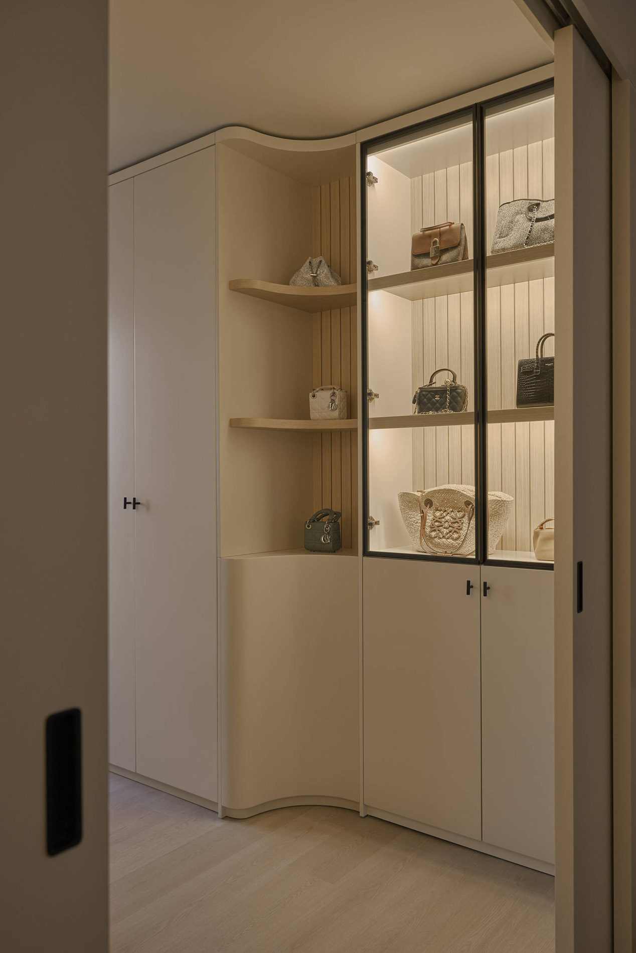 Các chi tiết hình khối bo tròn mềm mại được sắp đặt có chủ ý, giúp tổng thể căn hộ trở nên duyên dáng, khiêm nhường nhưng vẫn sang trọng. Thiết kế không hướng đến sự phô trương mà tập trung vào trải nghiệm sống chậm, sống sâu.