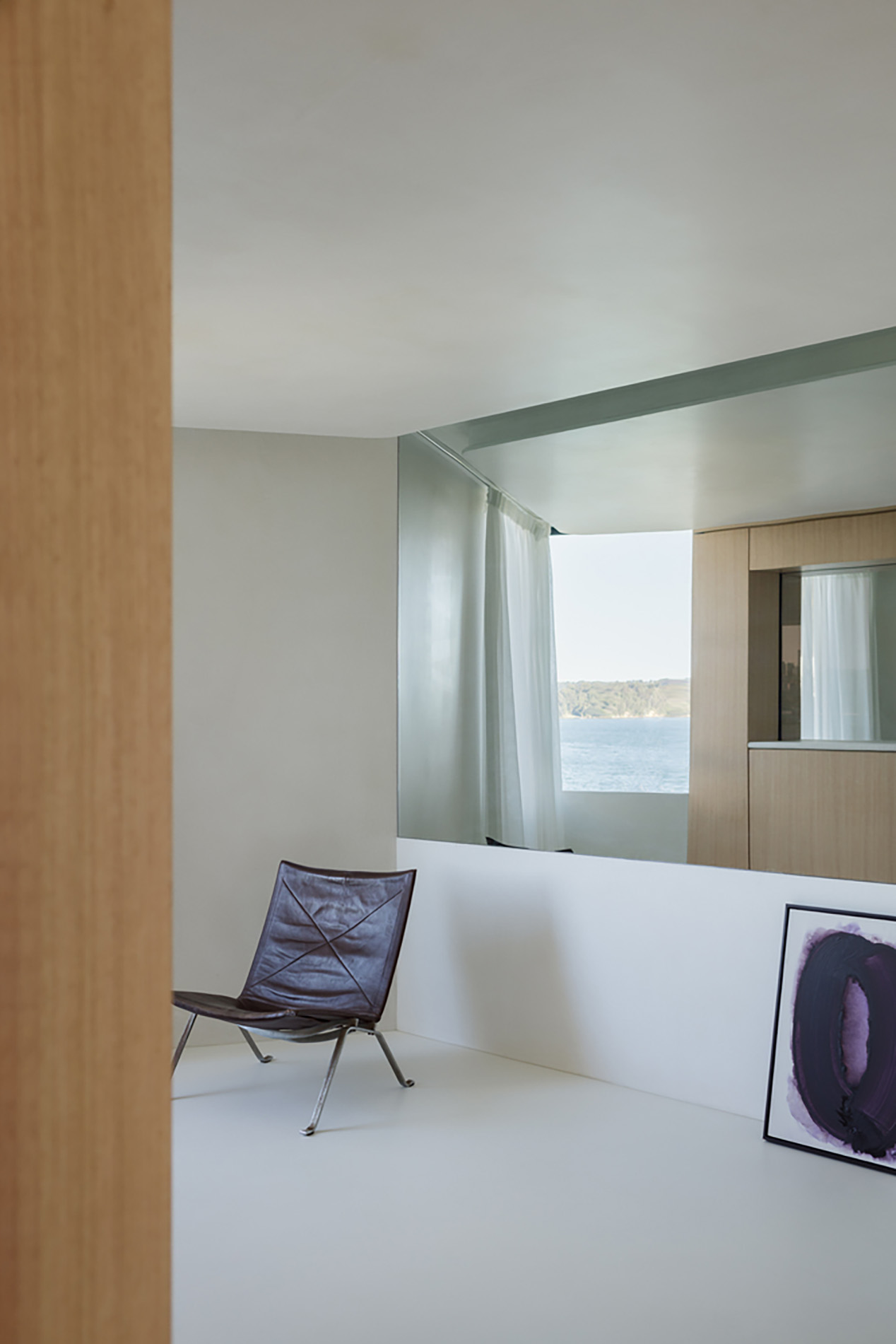 Hệ gương, tủ và rèm mỏng được sử dụng có chủ đích nhằm khuếch đại ánh sáng tự nhiên, tạo nên những lớp không gian vừa rộng mở vừa thân mật. Chung cư Darling Point Australia vì thế không chỉ có những khung nhìn lớn hướng biển, mà còn sở hữu các góc yên tĩnh dành cho sự chiêm nghiệm cá nhân.