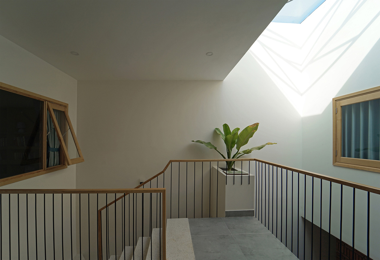 Điểm đặc biệt của Nhà phố Anne House Hòa Quý là việc sử dụng các “vùng đệm” xuyên suốt công trình. Vùng đệm bên ngoài giúp giảm nhiệt, vùng đệm bên trong tạo sự thông gió liên tục. Nhờ đó, ngôi nhà luôn duy trì cảm giác mát mẻ, dễ chịu như “lá phổi nhỏ” giữa lòng đô thị.