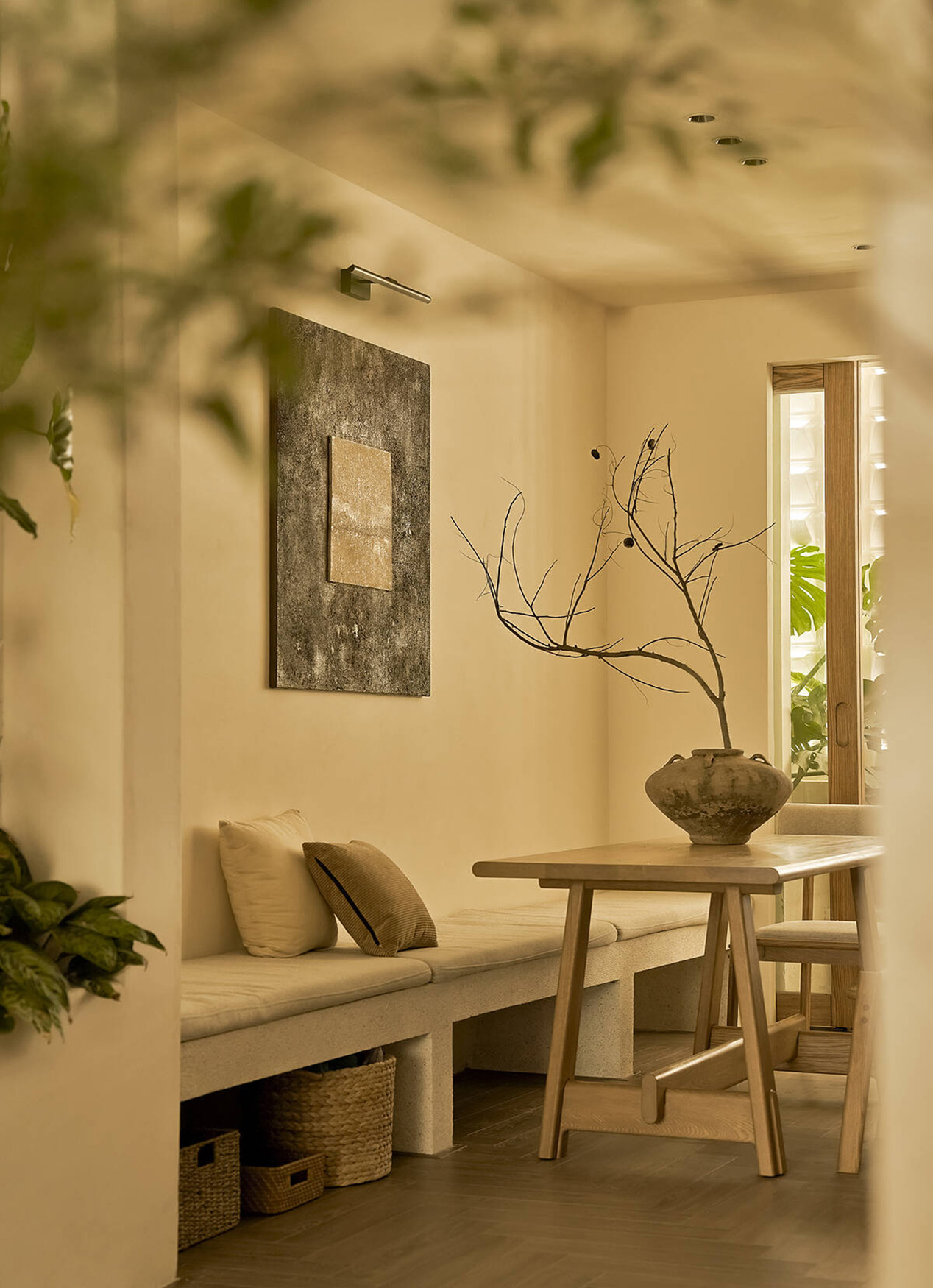 Cây xanh len lỏi trở thành yếu tố cảm xúc quan trọng – vừa làm mát không gian, vừa mang thiên nhiên trở lại đời sống đô thị.