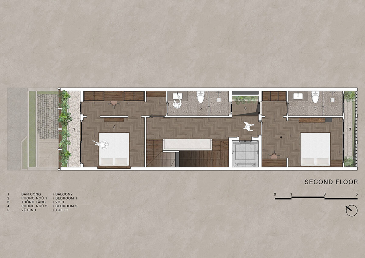 Gỗ mang đến cảm giác ấm cúng, kính tạo độ mở, và cây xanh là nhân tố “chữa lành”. Tất cả gói gọn trong triết lý: kiến trúc phải quan tâm con người trước khi thẩm mỹ được ghi nhận.