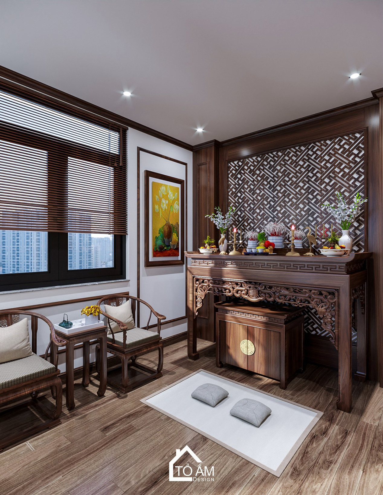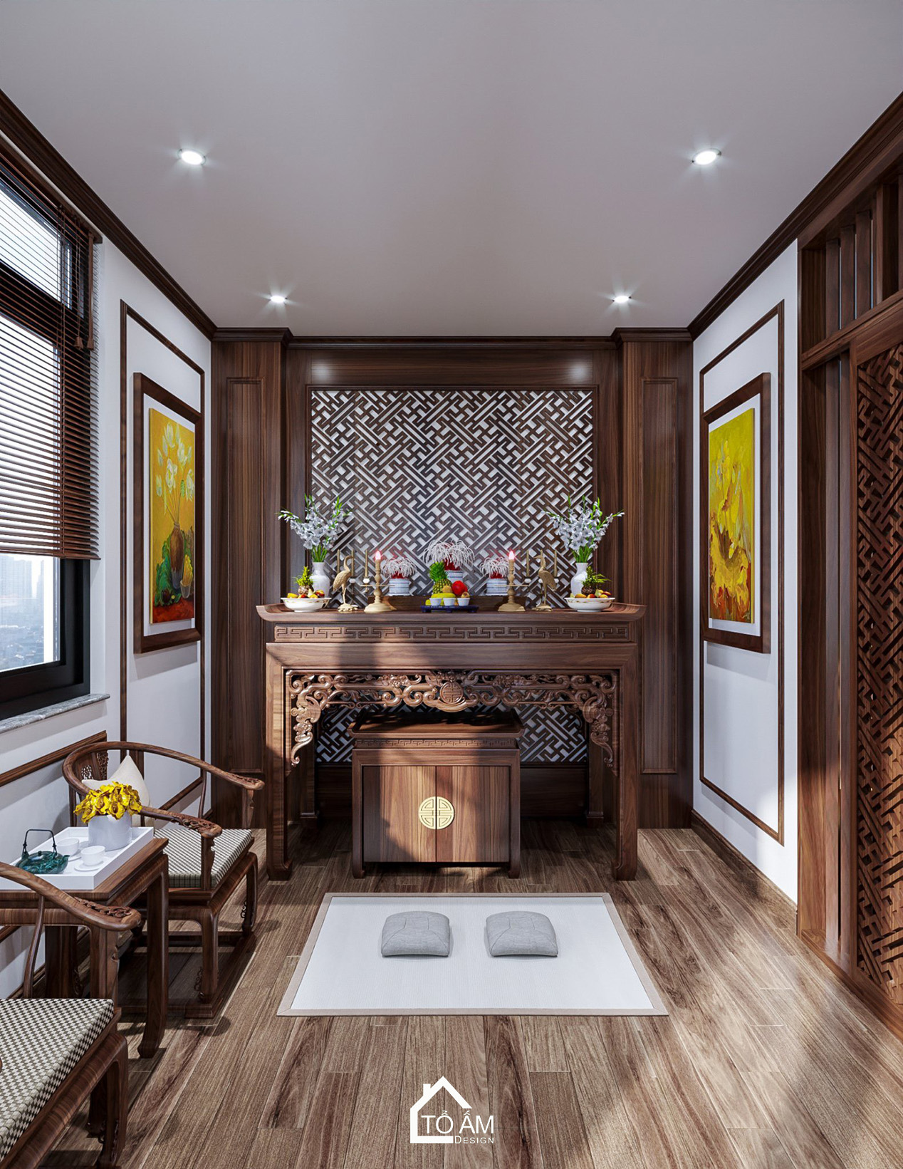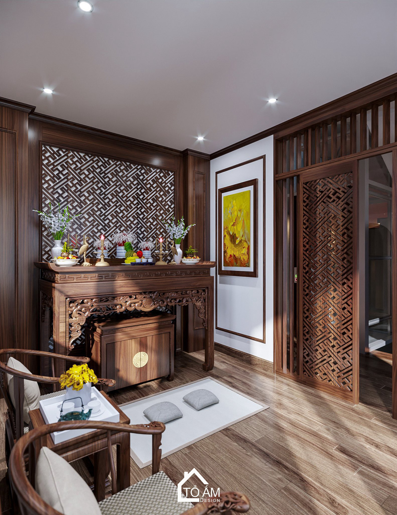 Phòng thờ biệt thự 3 tầng Ocean Park, thiết kế hiện đại – sang trọng, hài hòa.