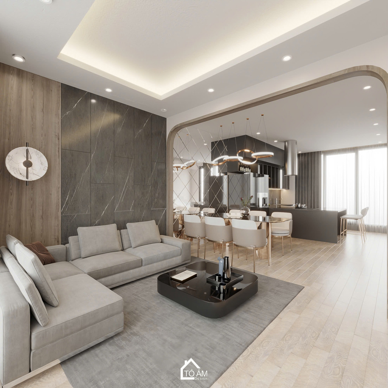 Phòng khách biệt thự liền kề 5 tầng Ocean Park, thiết kế hiện đại, nội thất gỗ MDF An Cường.