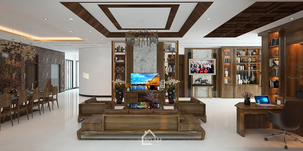 Tọa lạc trên tầng 4 và tầng 5 của tòa nhà mặt đường Hòa Lạc, thiết kế 3D penthouse Hòa Lạc rộng hơn 350 m² là nơi hiện thực hóa giấc mơ của chủ nhà – một không gian sống đẳng cấp, yên bình, hòa hợp với thiên nhiên và cảm xúc. Với chất liệu gỗ Óc Chó tự nhiên nhập khẩu làm chủ đạo, căn hộ mang tông màu trầm ấm, toát lên sự sang trọng, thanh lịch mà không phô trương. Đây chính là không gian Thiết kế penhouse Hòa Lạc mà Tổ Ấm Design tạo ra để kiến tạo không gian, chữa lành cảm xúc.